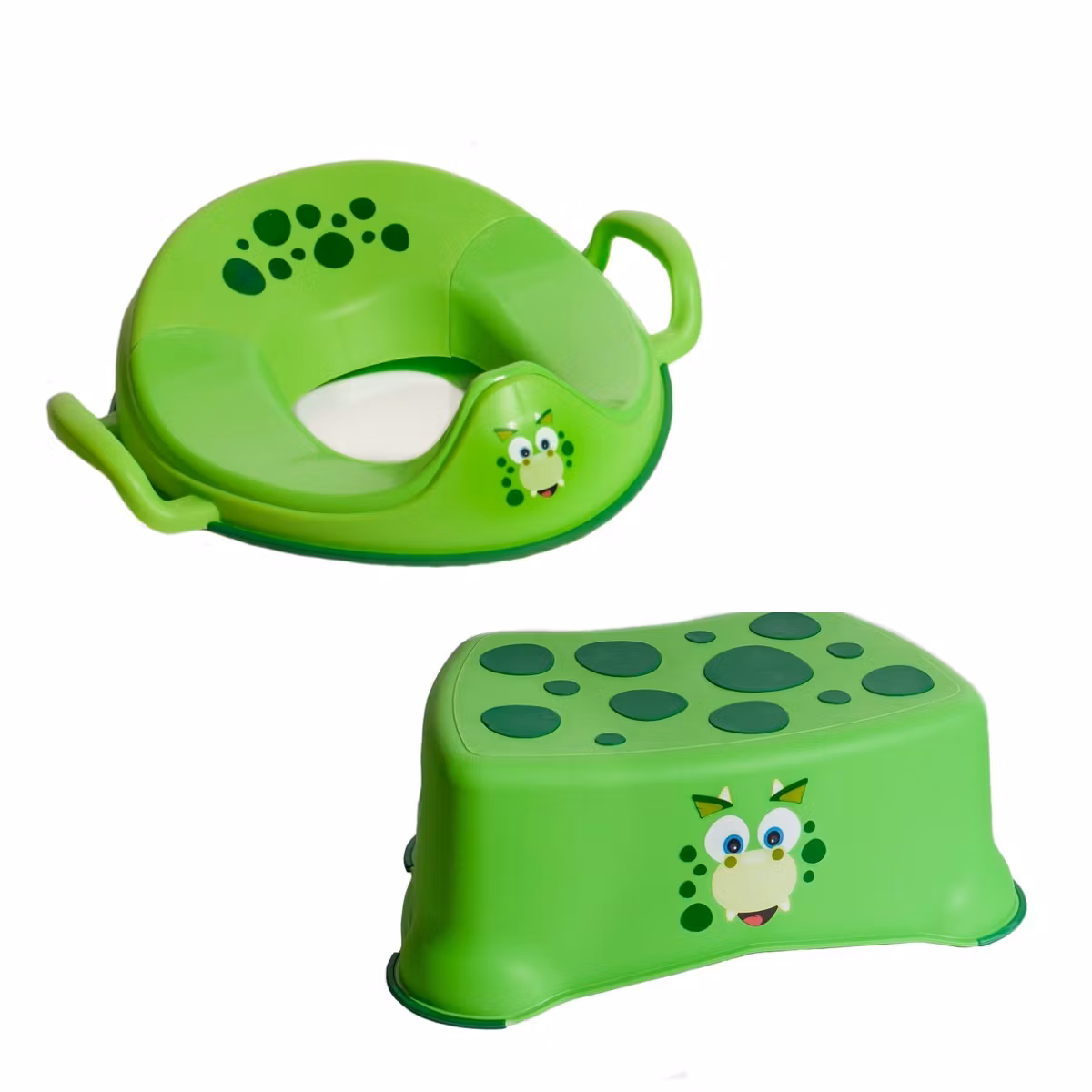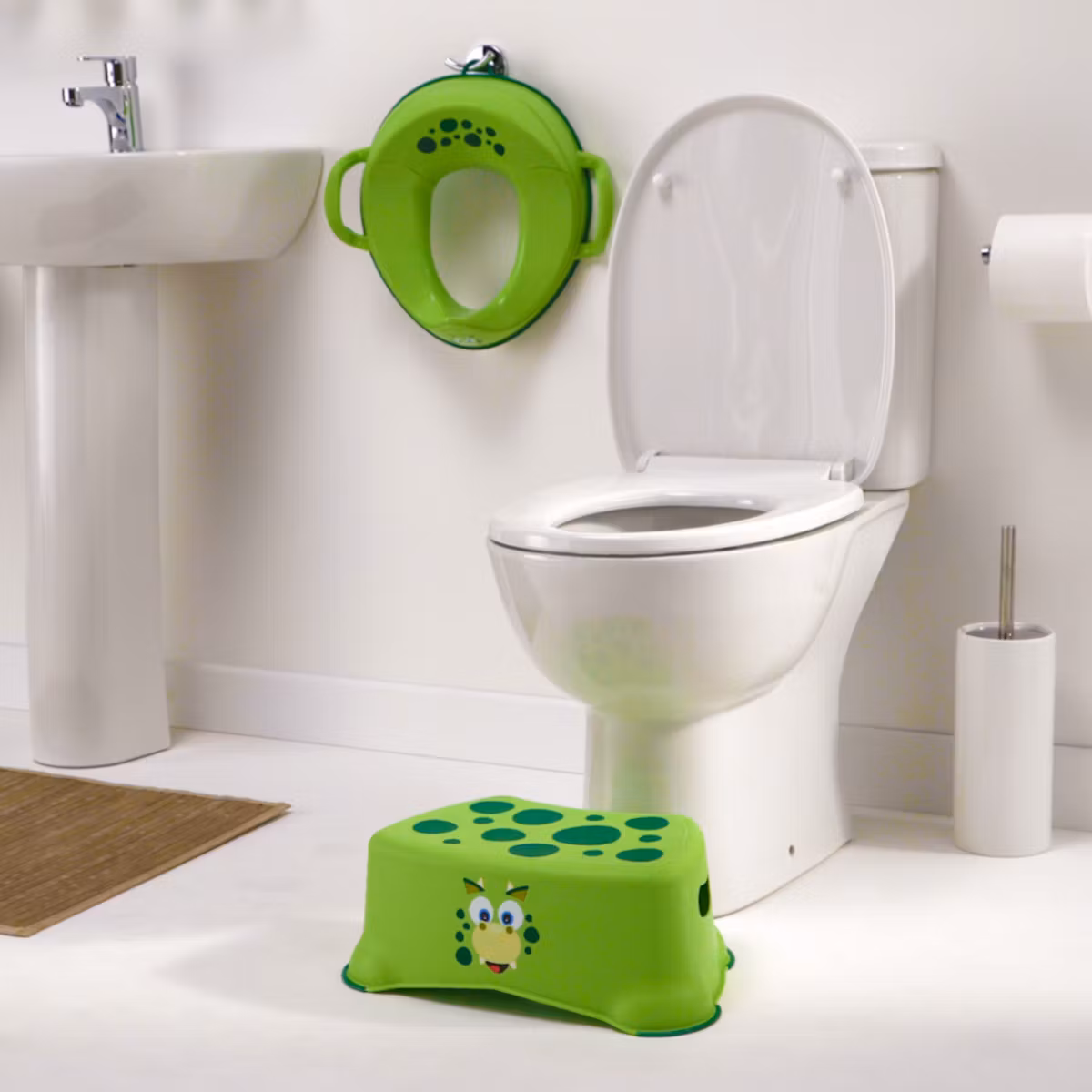 Vårt fine toalettsete gjør toalettbesøket morsommere og mer komfortabelt, og vår fine baderomskrakk hjelper barnet med å nå opp til vasken og toalettet.