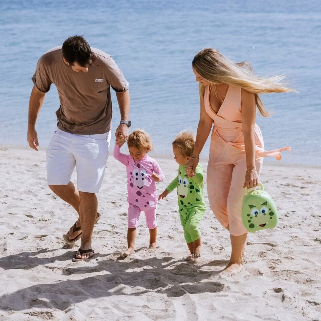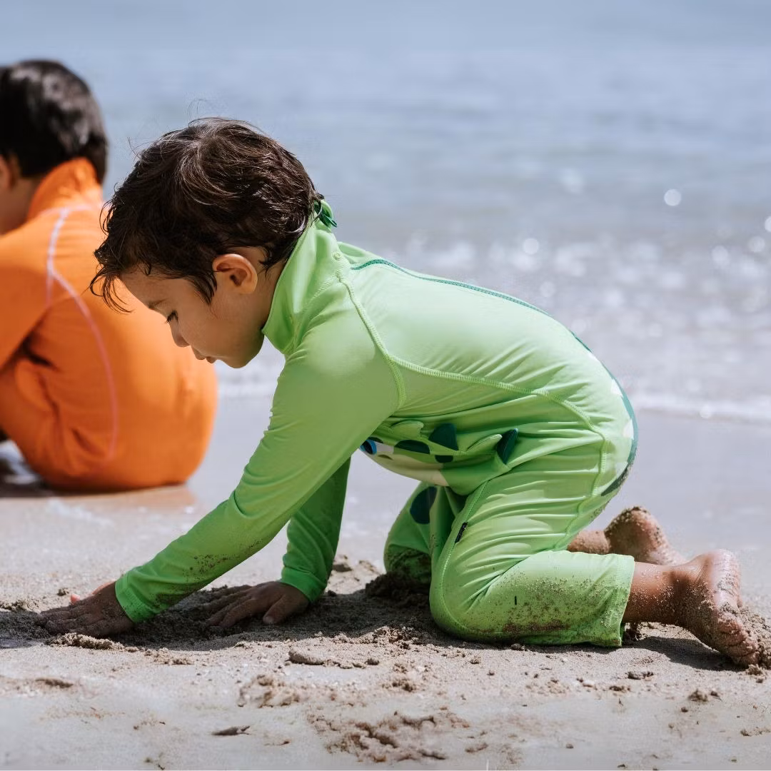 Våre flotte UV-drakter fra My Carry Potty leveres sammen med en matchende solhatt. Drakten er designet for å beskytte barnet godt mot solens farlige stråler – både under bading og lek på stranden. Solbeskyttelsesfaktoren er 50+ UPF, som blokkerer 98 % av solens skadelige stråling. Badedrakten har lange ermer og ben som går ned under kneet. Den leveres også med en solhatt med en solid skjerm, som både skygger for ansiktet og beskytter den sensitive nakken.